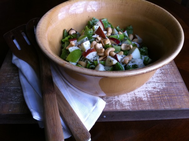 The simple flavors of apples, cashews and Swiss cheese are smashing together. The sweet poppy seed dressing clings nicely to the leafy lettuce and balances the tang of the apples. The crunch of the apples and cashews pairs so well with the silkiness of the cheese. It’s flavors are subtle and delicious. Better yet, they never overpower the other flavors of a larger meal.
